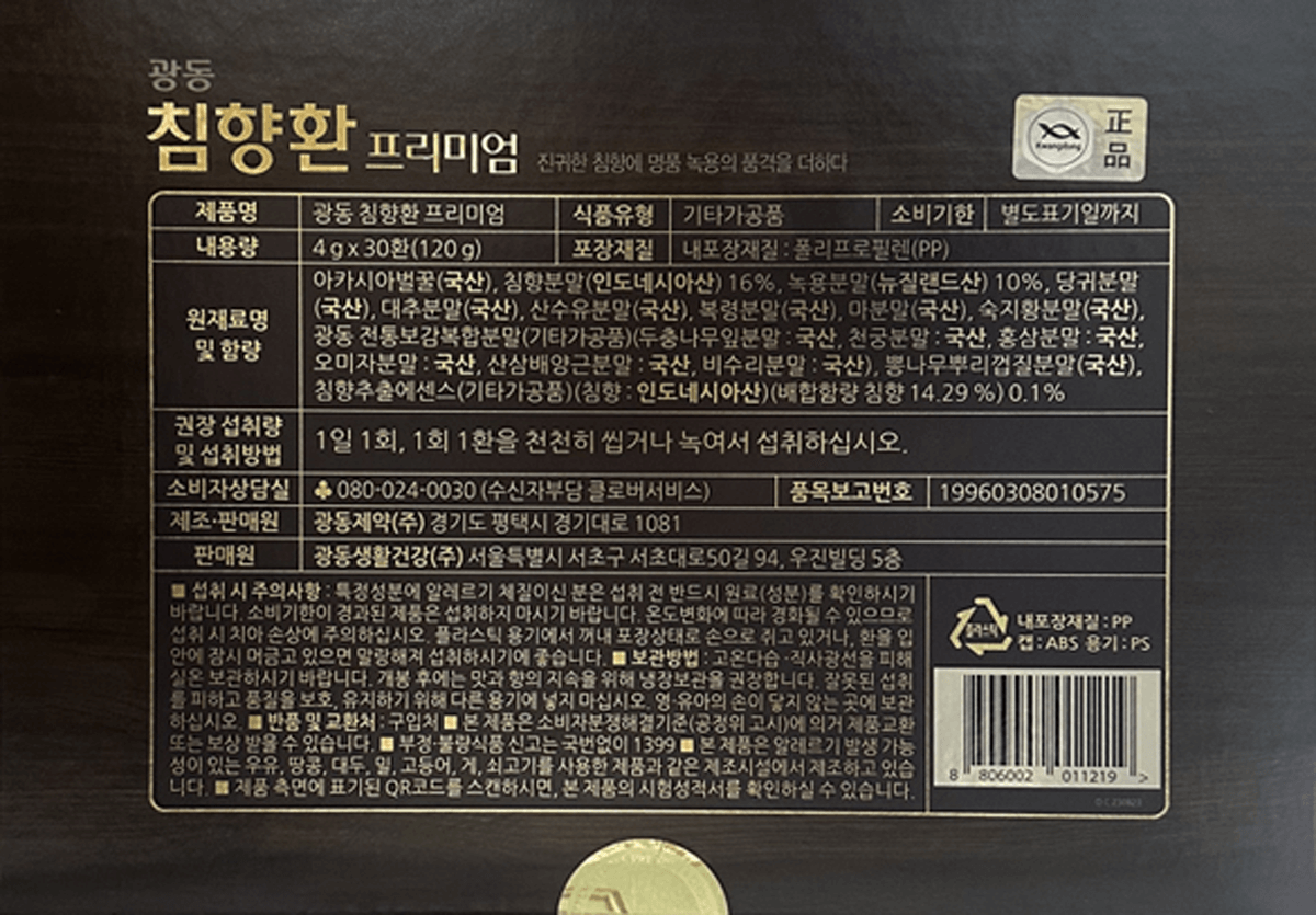 침향환처럼 전통 원료 기반의 건강환은, 원료의 진품 여부나 함량, 제조사의 품질 관리 여부가 매우 중요합니다. 특히 다음 사항을 확인하는 것이 좋습니다.