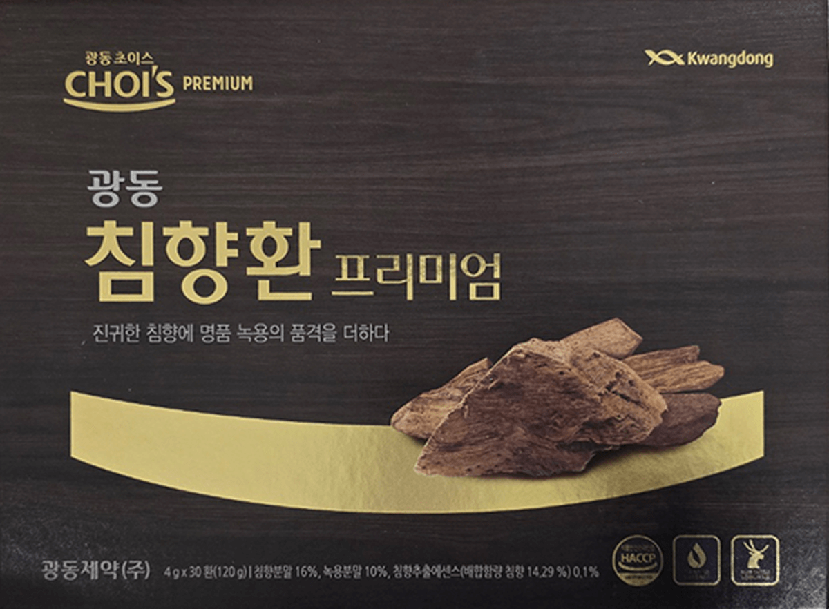 광동제약에서 제조·판매하는 광동 침향환 은 전통 한방 원료를 바탕으로 만든 건강환입니다. 주원료로는 인도네시아산 침향(침향분말)과 뉴질랜드산 녹용분말이 사용됩니다. 공식 제품 정보에 따르면, 침향환 프리미엄은 침향분말 16%, 녹용분말 10% 등 핵심 원료를 포함하고 있으며, 이외에도 당귀, 대추, 산수유, 복령, 마, 숙지황, 천궁, 홍삼 등 14가지 국내산 전통 보감 원료가 함께 배합됩니다.